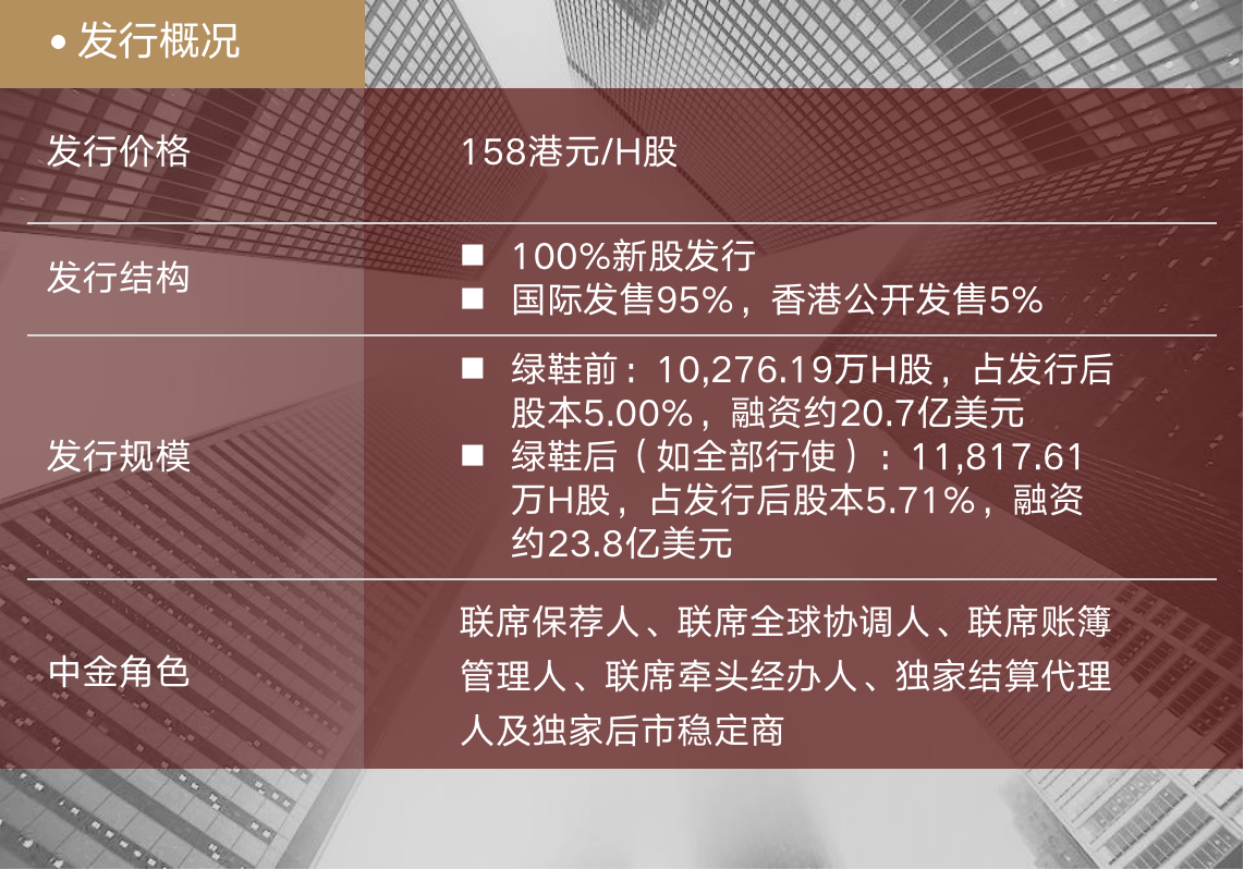 中金公司作为项目的牵头保荐人和总协调人,全面牵头项目整体执行和销售工作,并为本次发行引入多家优质基石及锚定投资者,助力公司完成高质量发行,赢得了客户和投资者的一致信赖和认可。