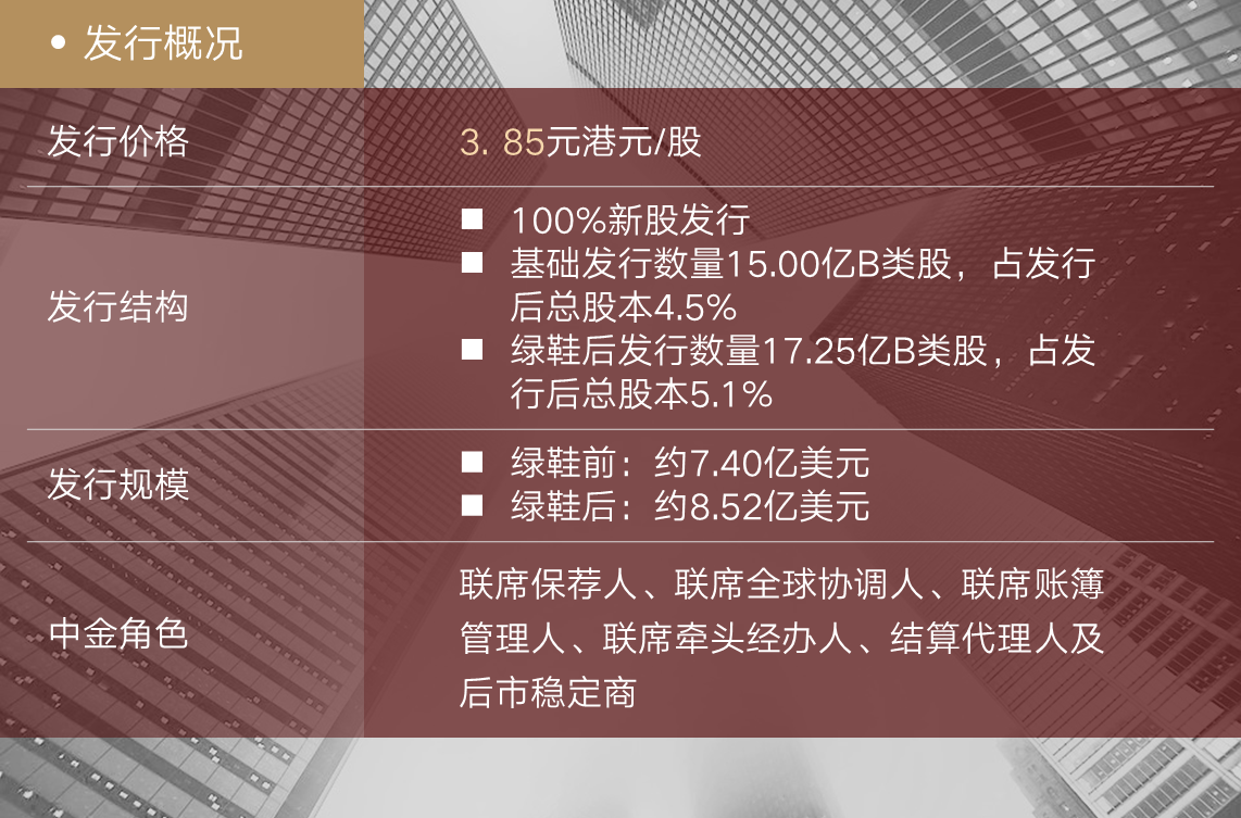 作为以“植根中国,融通世界”为使命的中国领先投资银行,中金公司一直致力于为客户提供高质量金融增值服务。凭借丰富的资本市场经验、境内外业务平台的无缝对接,中金公司将持续为客户提供一流的金融服务,为企业引入全球优质投资者、登陆国际资本市场做出贡献。