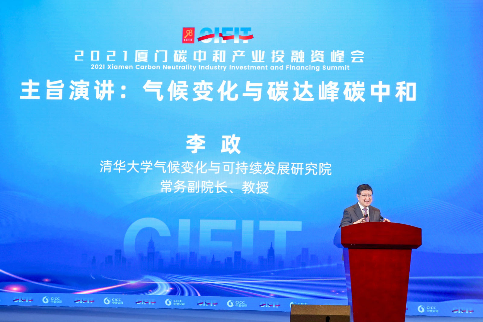 2021厦门碳中和产业投融资峰会由厦门市人民政府指导,厦门市发展和改革委员会、厦门市生态环境局主办,中国国际金融股份有限公司(简称“中金公司”)承办,中金资本运营有限公司(简称“中金资本”)、厦门金圆投资集团有限公司(简称“金圆集团”)协办,并得到清华大学气候变化与可持续发展研究院、清华海峡研究院、武岳峰资本的战略支持。
