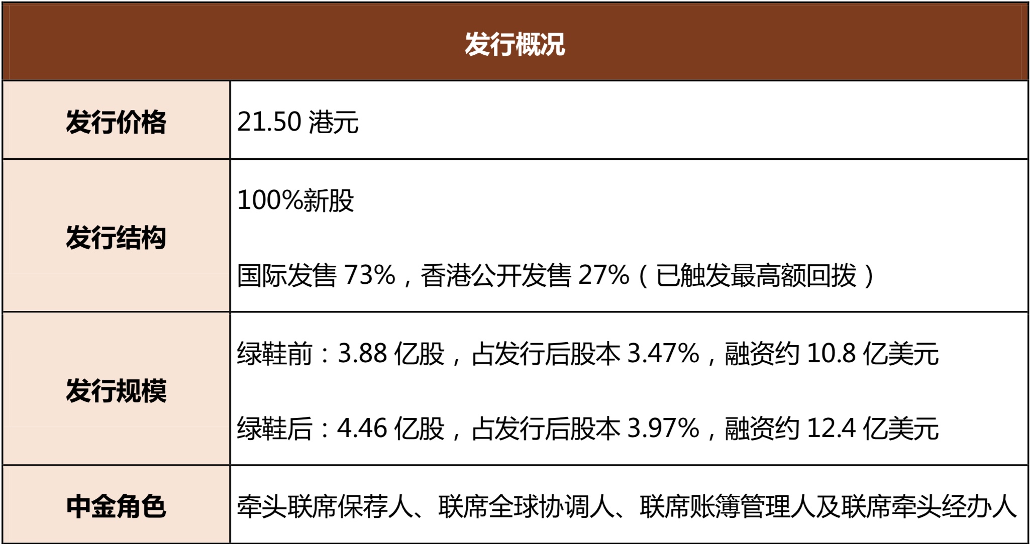 本次交易中,中金公司作为牵头联席保荐人与牵头全球协调人,全面负责执行本次上市申请与发行推介工作,帮助公司成功完成香港上市。