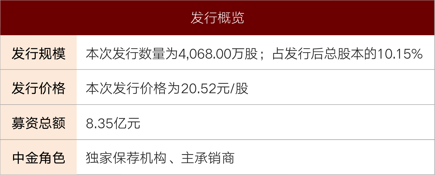 在本次上市过程中,中金公司作为独家保荐机构和主承销商,全程严密把控项目执行进度至最终实现成功上市;项目团队凭借对审核思路和客户情况的深入理解,以通俗易懂的语言阐明公司前沿尖端的业务与核心技术,充分有力地说明了公司的持续经营能力和良好的发展前景;在发行阶段,中金公司面向北、上、广、深地区投资者为公司安排多轮管理层路演及分析师路演,疫情期间也通过电话会议、视频会议等形式举行多场路演,覆盖多家知名机构投资者,最终网下认购倍数超过1,500倍,IPO发行估值较上轮融资溢价约3倍,上市首日收盘价较发行价涨幅约130%,中金公司充分发掘公司投资价值,最终实现成功发行。